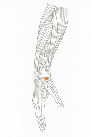 橈骨動脈の拍動を感じる部位でもあり、押すと軽くズキンとするような響きがある。