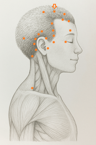 この経穴は、頭部において**「正気と営気が交わるポイント」**であり、**気血の上昇が秩序正しく行われるよう調整する関所**のような位置づけです。