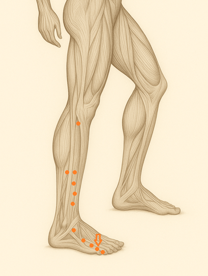 特に歩行や外反母趾の影響を受けやすく、反応点としても鋭敏な位置。