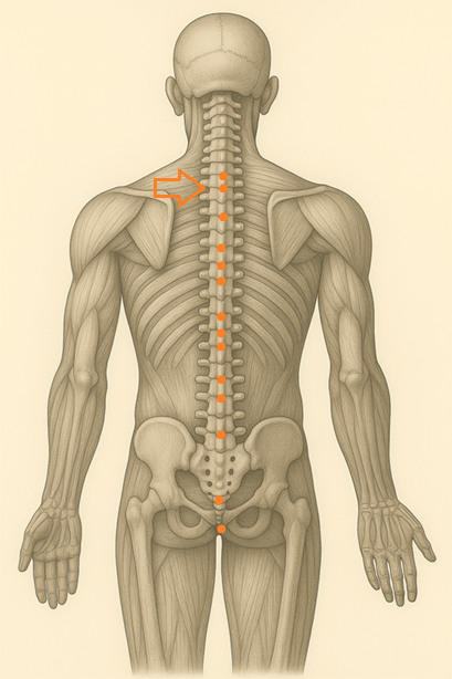 うなじのすぐ下、首から背中への“境界”となる位置