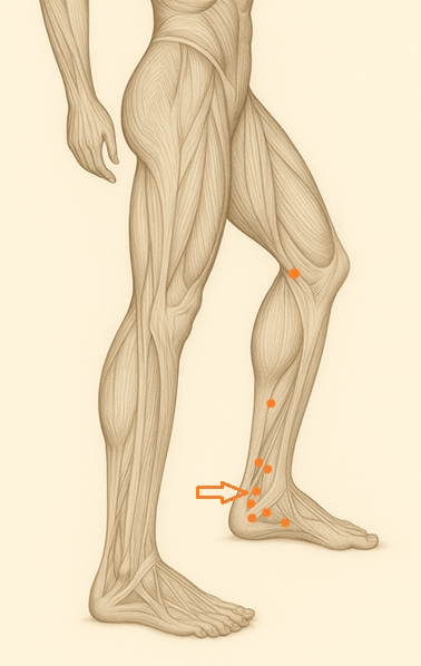 アキレス腱、後脛骨筋腱、長趾屈筋腱