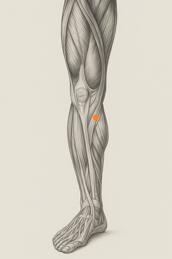 腓腹筋、半腱様筋腱、薄筋との交差部位