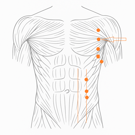 乳頭の外上方、胸郭がやや持ち上がるポイント。