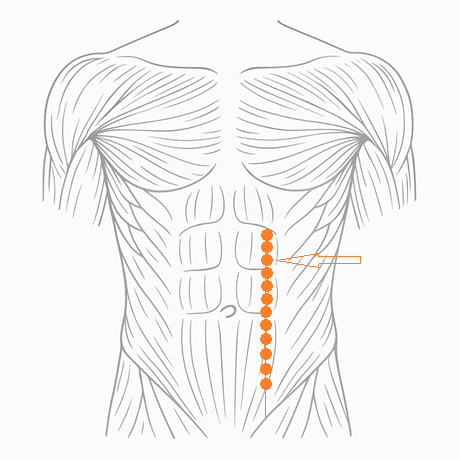 体幹の正中線から指3本分外側で、触診により筋肉の硬さや圧痛を参考に取穴する。