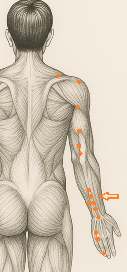 ・三陽経(手の陽明大腸経・手の少陽三焦経・手の太陽小腸経)の疏通障害による頭痛、肩こり、腕の緊張・疼痛