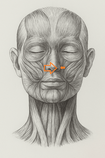 内迎香は、上迎香・迎香と対をなす“呼吸三穴”のうち、もっとも内的作用が強い。