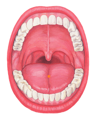 舌を軽く前方に突き出した状態で舌中央(先端と根部の中点)に取る。