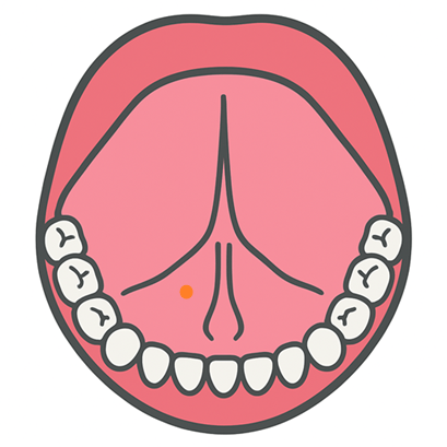 舌をゆっくり前へ出し、舌小帯右側の青筋上に極軽刺激を行う。