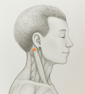 翳風(TH17)と風池(GB20)を結んだ線上の中点。