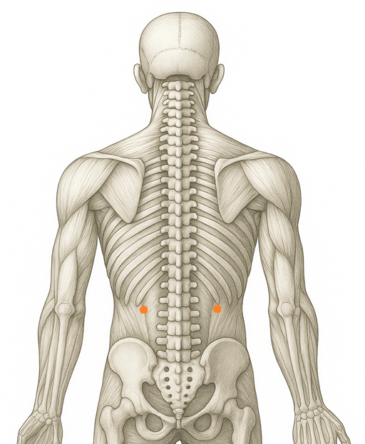 ・胃腸機能と腰部の連動を示す重要な奇穴であり、内臓と背腰部の経絡的つながりを臨床的に示している。