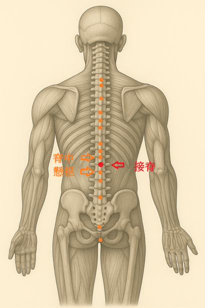 「脊を接ぎ、内外を通す」働きを持つ奇穴として伝えられてきた。