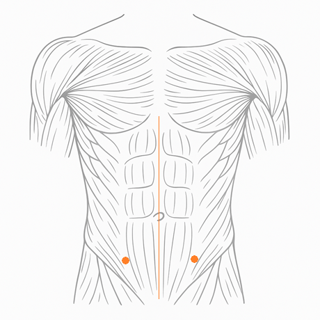 - 腹直筋の外縁を探し、その外側で「呼吸に合わせて沈む柔らかい点」を目印にする。