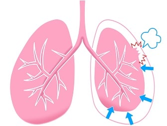 正常の肺では、肺の臓側胸膜と壁側胸膜の間で表面張力が働き胸膜液により、肺の膨らみが維持されています。