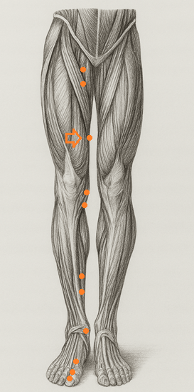 - 経絡の流れを整える際、曲泉とセットで使うと「上から下へ流れる肝気」を調整しやすい。