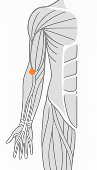 ・腕全体のだるさや熱感、特に肘を中心とした炎症を鎮める冷却のツボとしても働く。