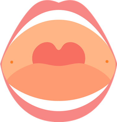 - 噛みしめの強い人は頬筋が硬く、穴を探しにくいため、軽く「イー」と口を横に広げてもらうと位置が明瞭になる。